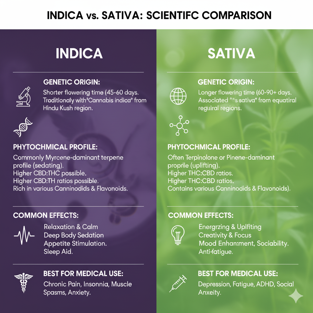 -Myrcene (often dominant in Indica’s) is associated with sedative effects.
